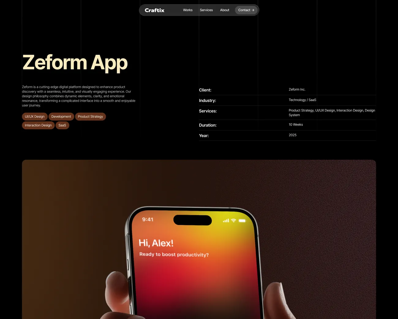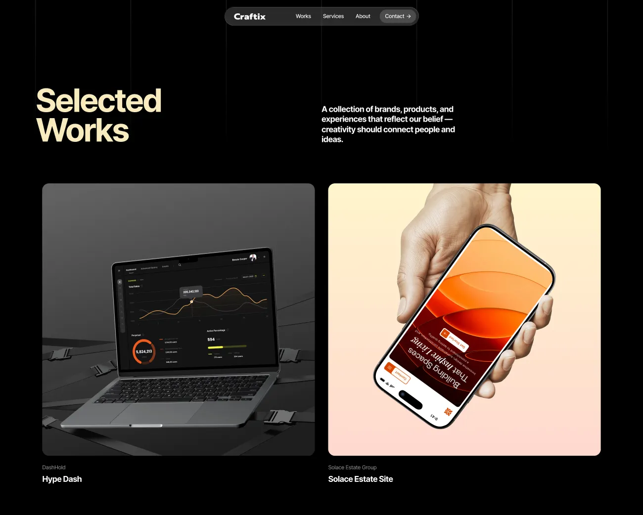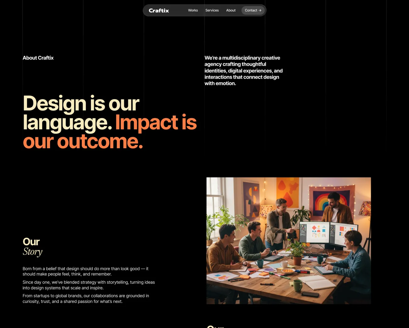 Craftix is a creative digital agency WordPress theme built for modern brands of today. Set against a deep black canvas, it blends vibrant pops of orange with soft butter yellow accents to create a bold yet refined visual identity. Unique layouts and smooth, eye-catching motions bring your work to life, helping you showcase your brand with clarity and confidence. And with fully functional pages like Works, Services, Contact, etc, powered by Droip, every section is customizable, scalable, and ready to launch in no time.