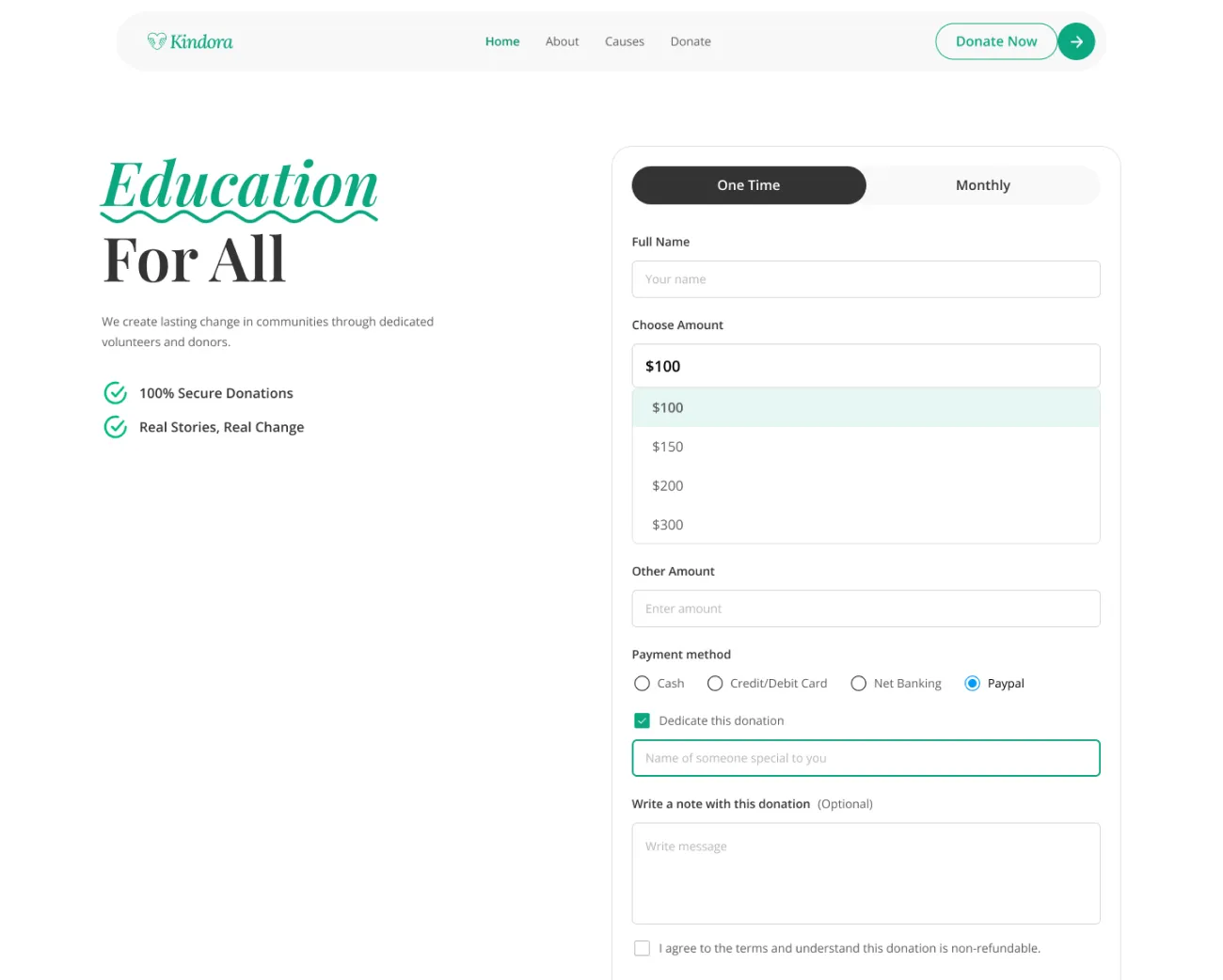 Kindora is a charity and donation WordPress theme crafted to connect organizations with the communities they serve. Designed for emotional storytelling and seamless donation, it features warm hero sections, powerful cause highlights, dynamic donation call-to-actions, and inspiring testimonial sliders. Built with Droip, Kindora gives you complete creative freedom, from customizing the homepage to tailoring every essential page, such as Causes, Donate, and more. It’s the perfect foundation for organizations to raise awareness and drive real change.