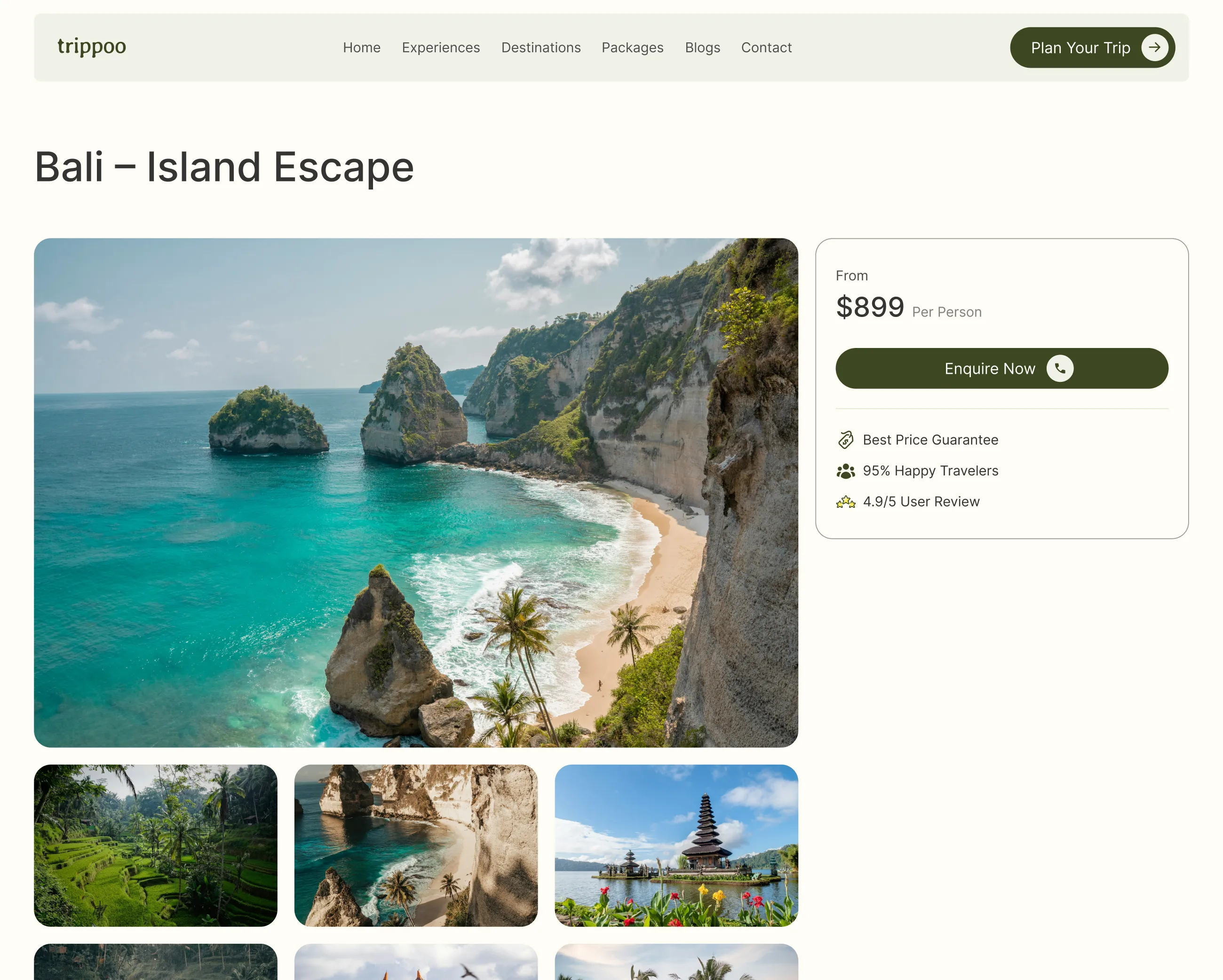 And at its core, Trippoo is powered by Droip, giving you full creative freedom to build, scale, and level up your travel website.